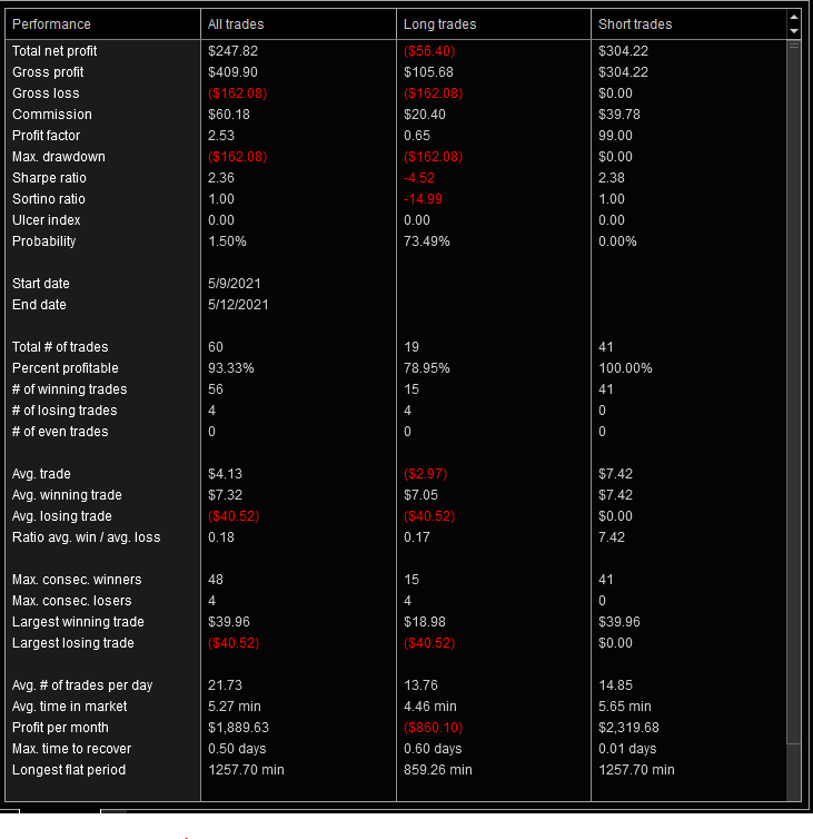 That said here are my results in live and sim trading from 5/9 to today as of 3:40 PM EST.