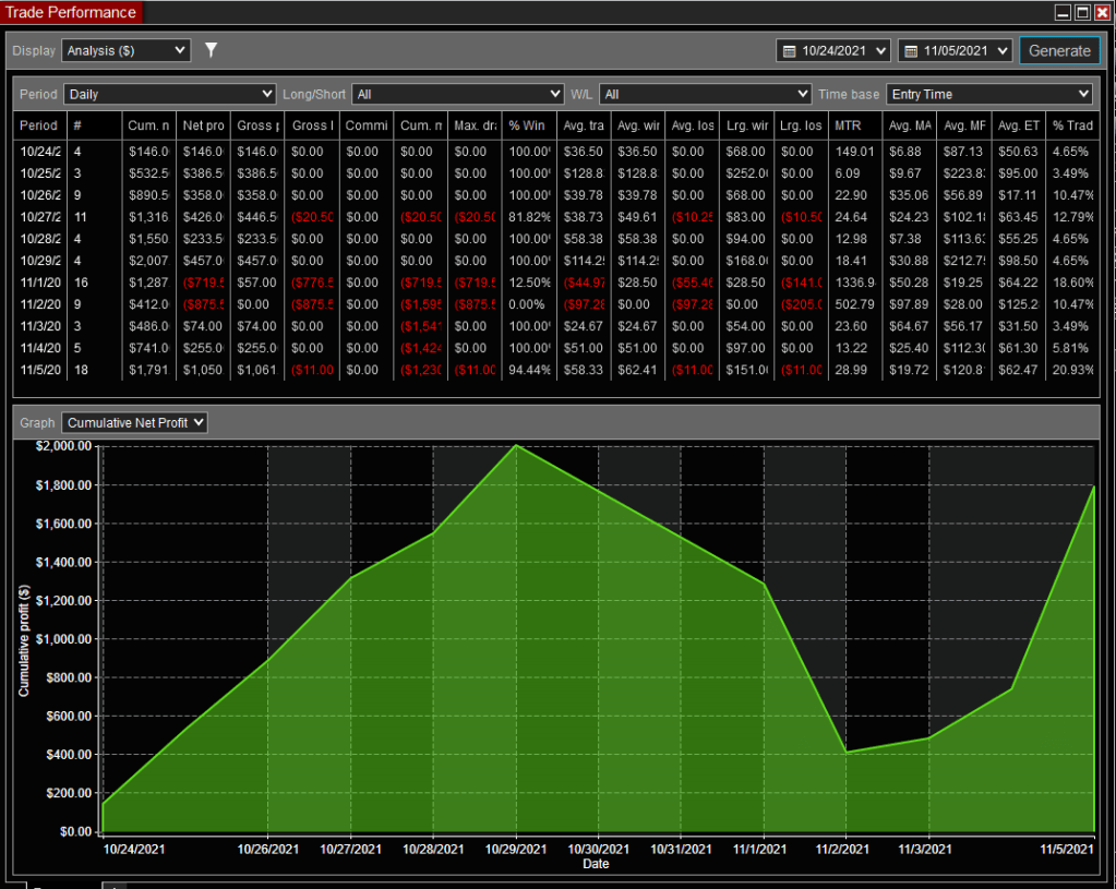 On the Futures trading side I have been doing some Algo testing of the AlgoNinja product and I am running some settings in a live environment against a SIM account. So far the results are positive, I will document this more in the coming days. I have also continued to learn more about trading without Algos as I feel this is most likely the end game for myself.